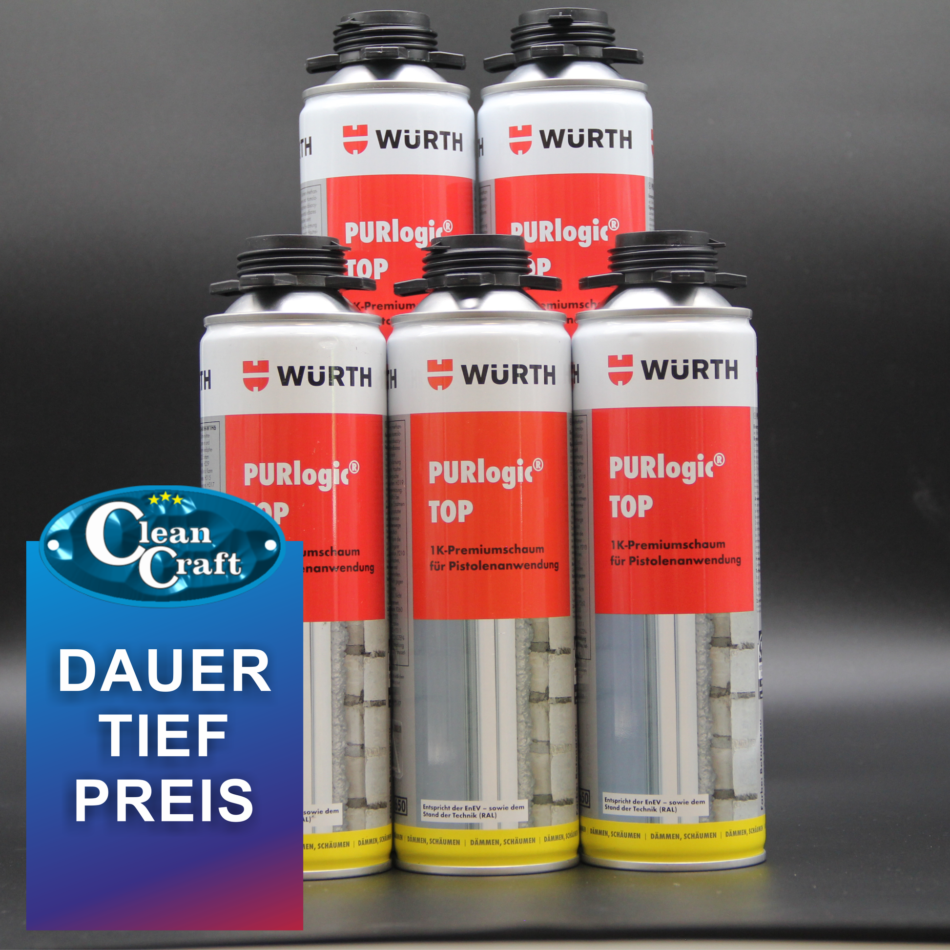 5x WÜRTH Purlogic TOP 1 K Pistolenschaum Betongrau ( Bauschaum, Montageschaum )