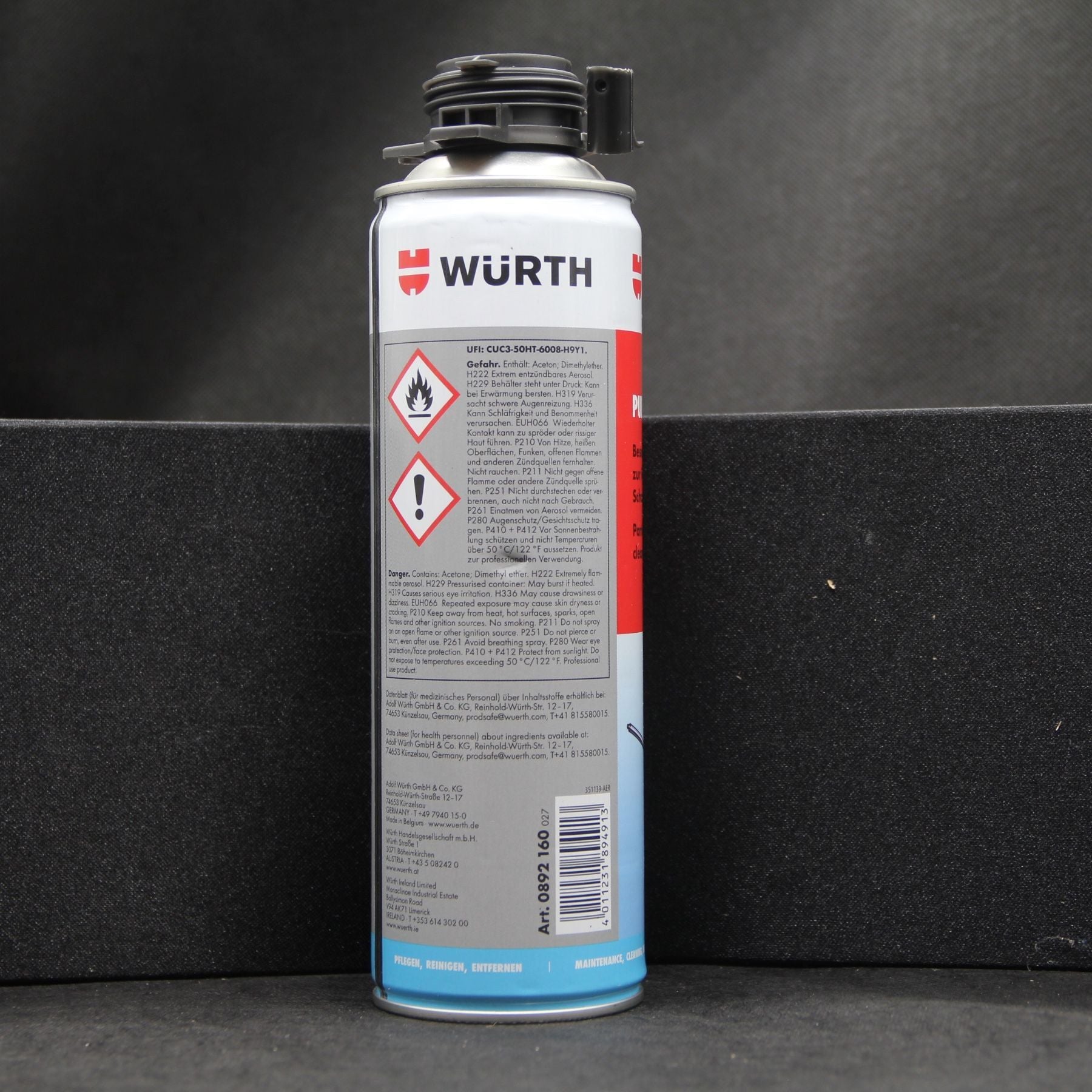 Erleben Sie die Kraft des hochwirksamen Lösemittels von WüRTH für PU-Schaum!